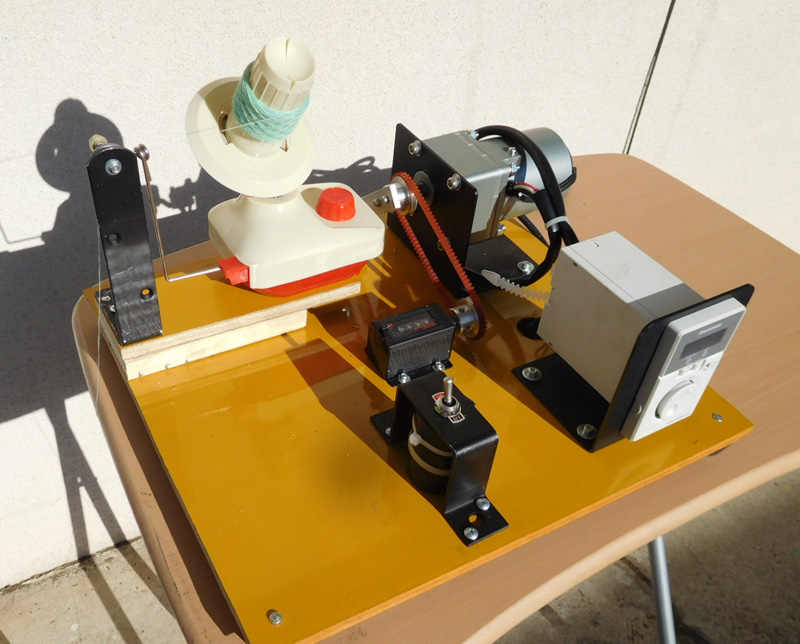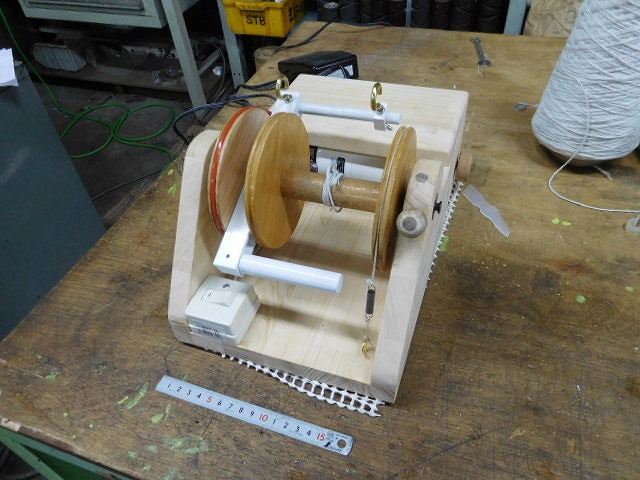 残糸整理に使えます。残糸を合糸して太くできます。 風花工房様と工房ふじ様とサンキンサービスのコラボで、 卓上フライヤー撚糸機改造しました。 カウンターも取り付けできます。 回転方向スイッチで切り替えられます。 |